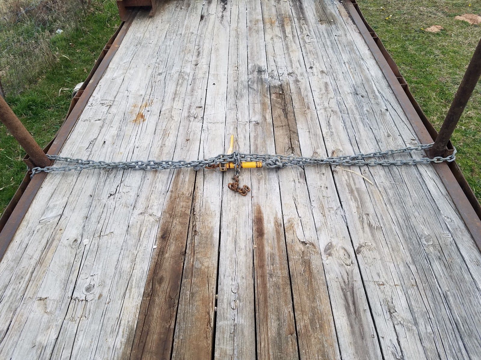 side of the bed is chained to the stake on the right. Tighten chains using binders.