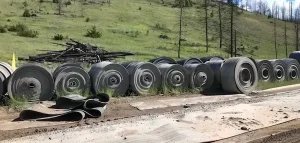 Need to be able to see as many conveyor belt rolls as possible in one photo. This way we can get a idea of the total amount of material you have. As pictured below: